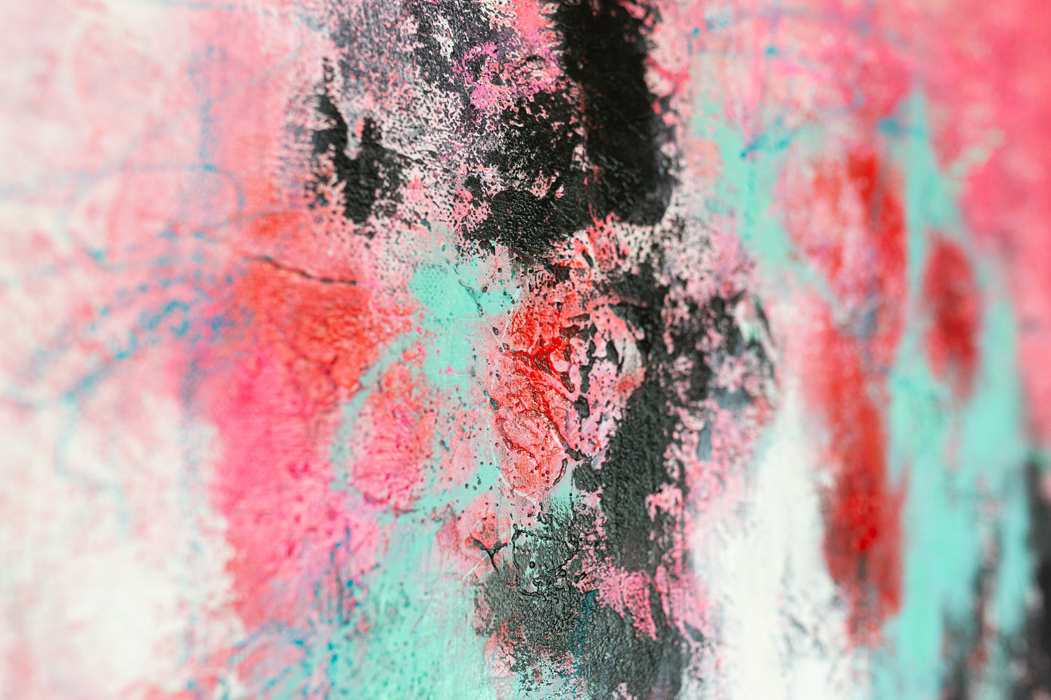 This painting evolved over time - very intuitively. It had a real sense of discovery along the way. It has many layers and even some of the very first one is still peeking through in some areas, intentionally. Building layers is one of my greatest passion when it comes to creating my abstract pieces. It creates depth in which you can get lost and discover new things every time you look at it. It's a never ending experience.
