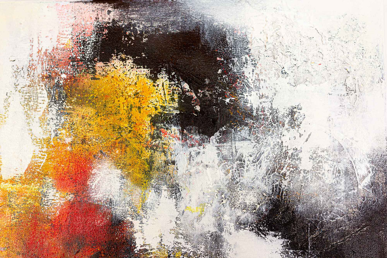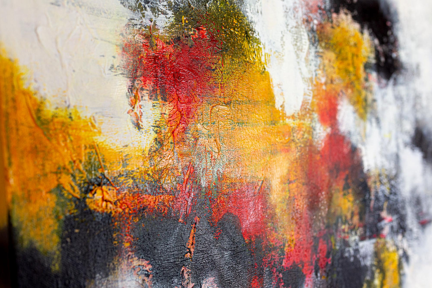 The strong and powerful colour story guided me through the somewhat mystical creative process in this piece. By the end, the finished piece emerged from the deep seated realms of my intuition. The texture, physical and visual, and the materials used, add a level of depth that invites you into the painting and get lost in the beautiful world beyond the clouds.