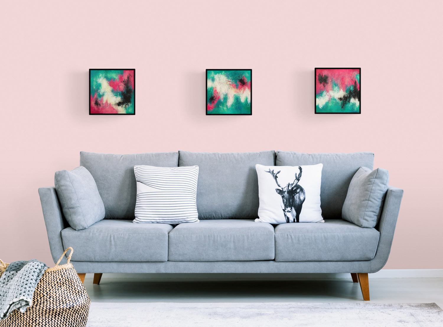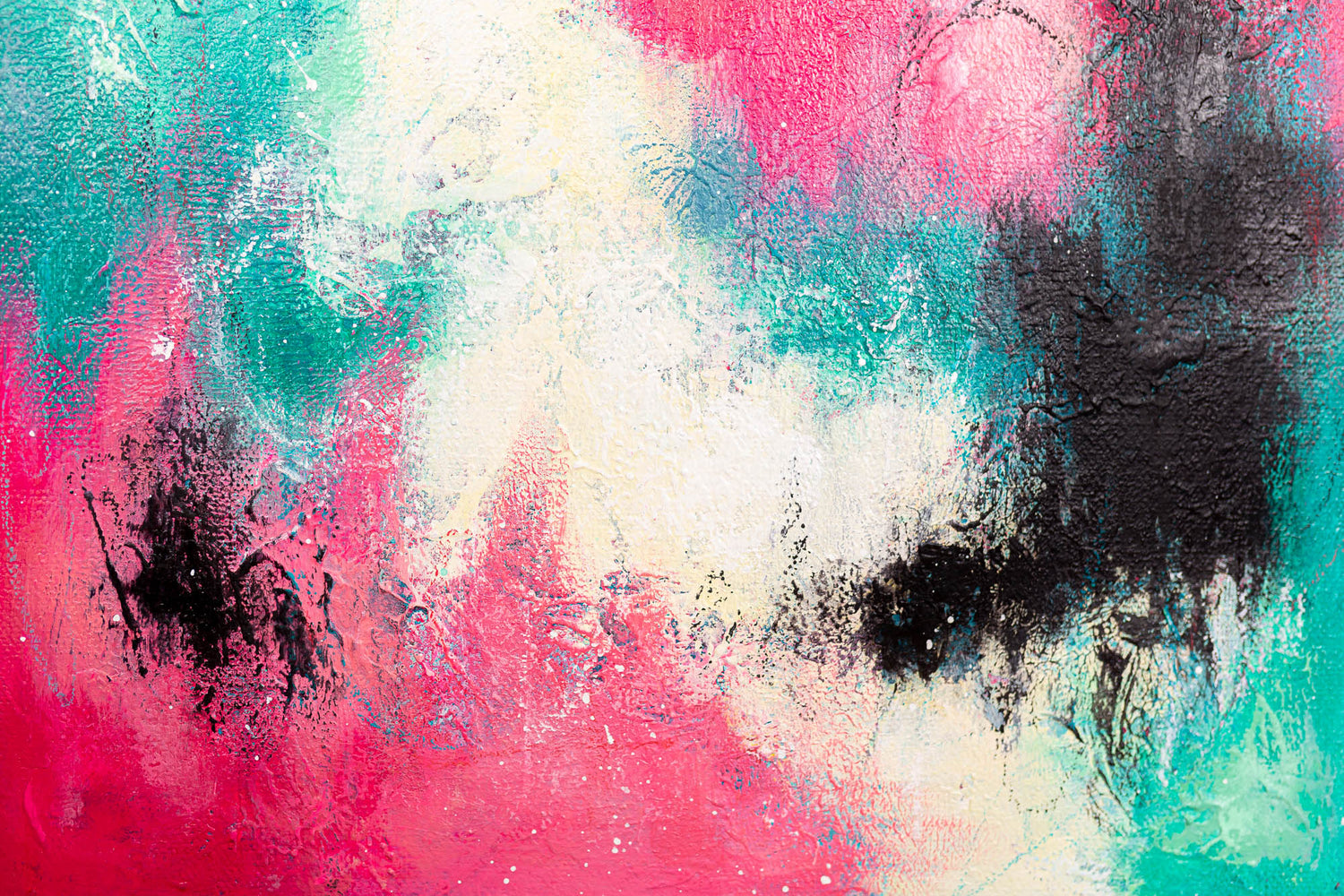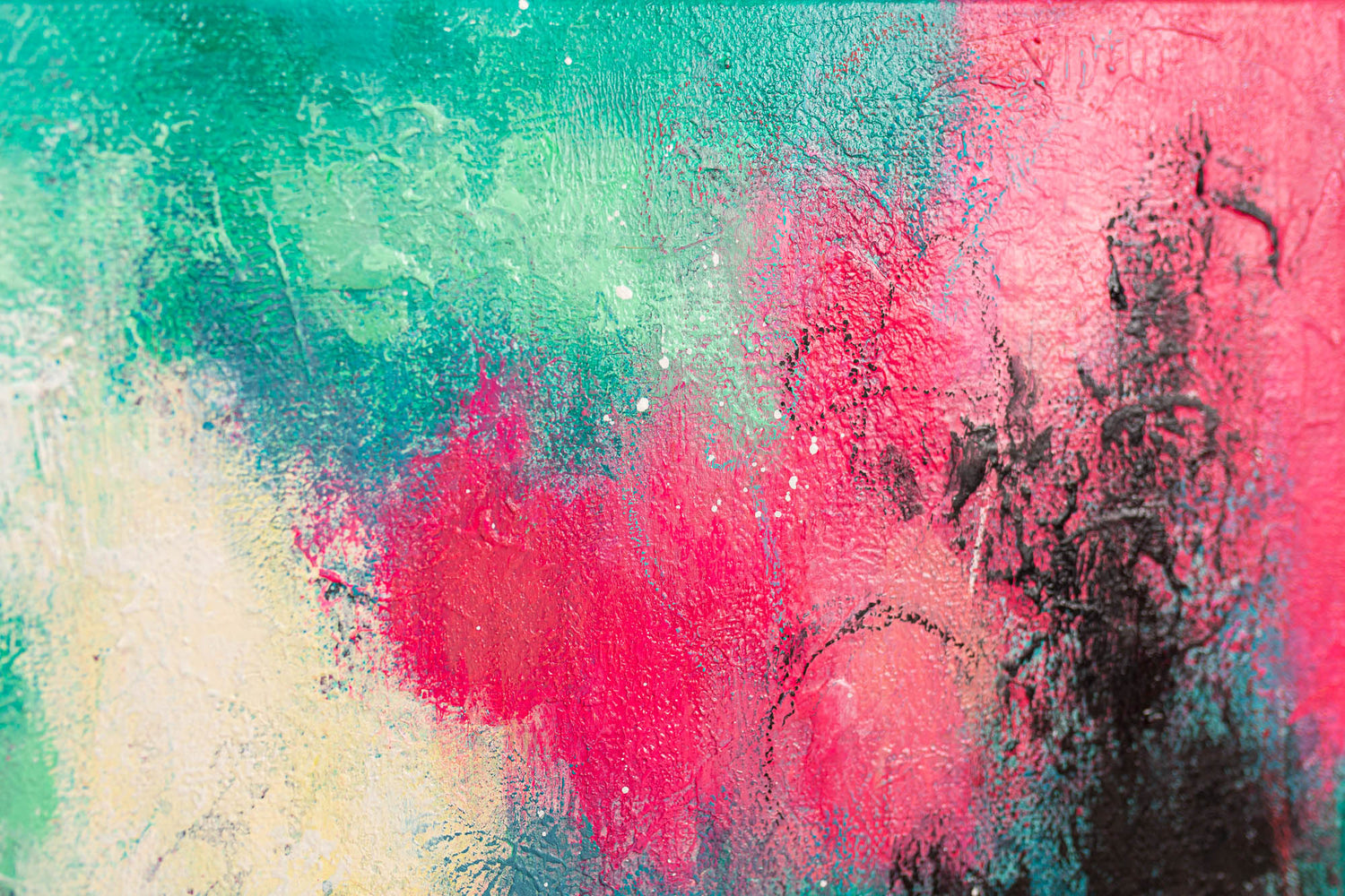 The inspiration for this series came from the colours palette that I've chosen from the start. I wanted to have a dominant colour of turquoise/mint green and combine this with pinks, but then add some neutrals in to balance everything out. My love for bright and vibrant colours in my art represents deep exploration and dreaming. They are joyful and playful and take me back to childhood experimentation and simply having fun.