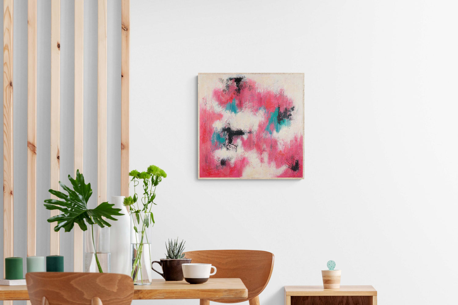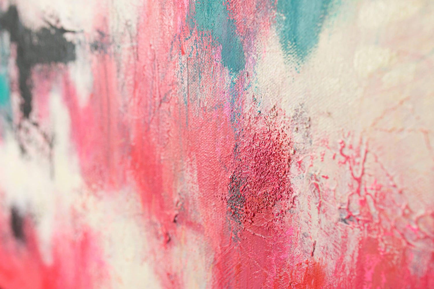 This painting came together quite quickly. The energy simply poured straight out of me directly onto the canvas. Incorporating textures, physical and visual, into my artworks really gives them a sense of depth that pulls right you in. Let yourself be immersed into this piece and bring its joyfulness to your home.