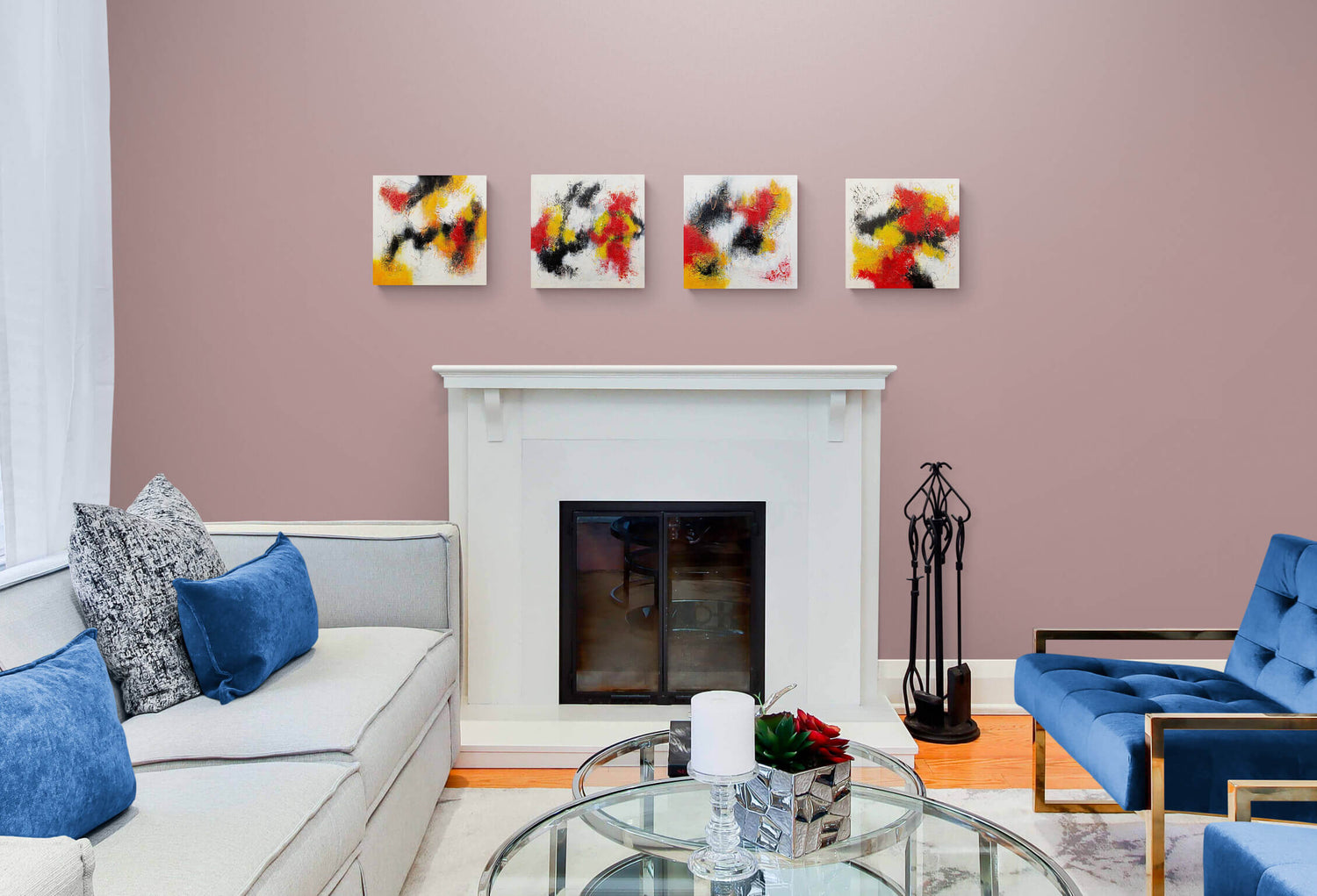 All 12 pieces have a very similar strong colour story but without each being the exact same - each piece has their own identity. This I find really fascinating - despite using the same materials on each 4-piece bundle - and also across the entire whole 12-piece collection - each 12"x12" painting looks unique and has its own essence and radiance.
