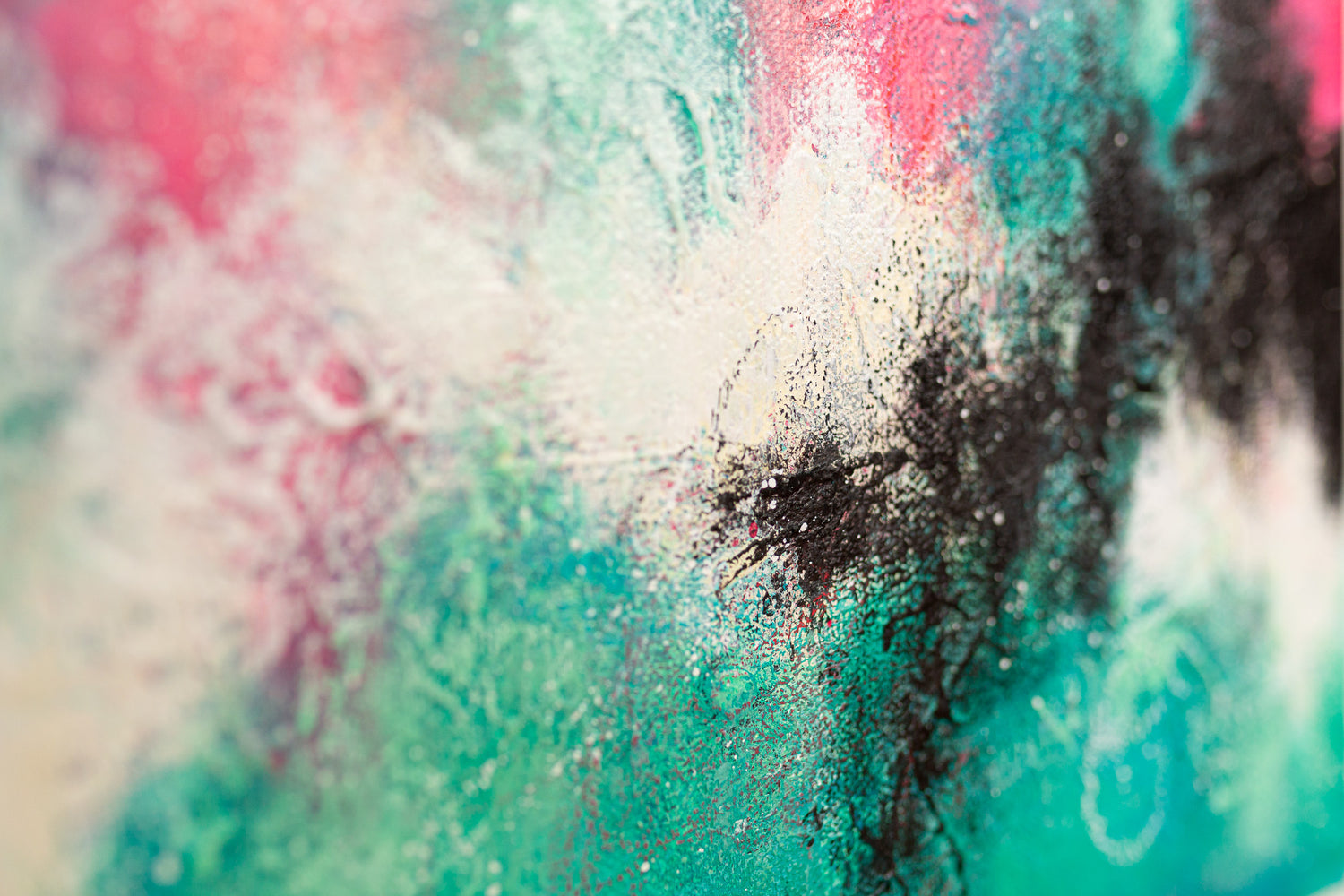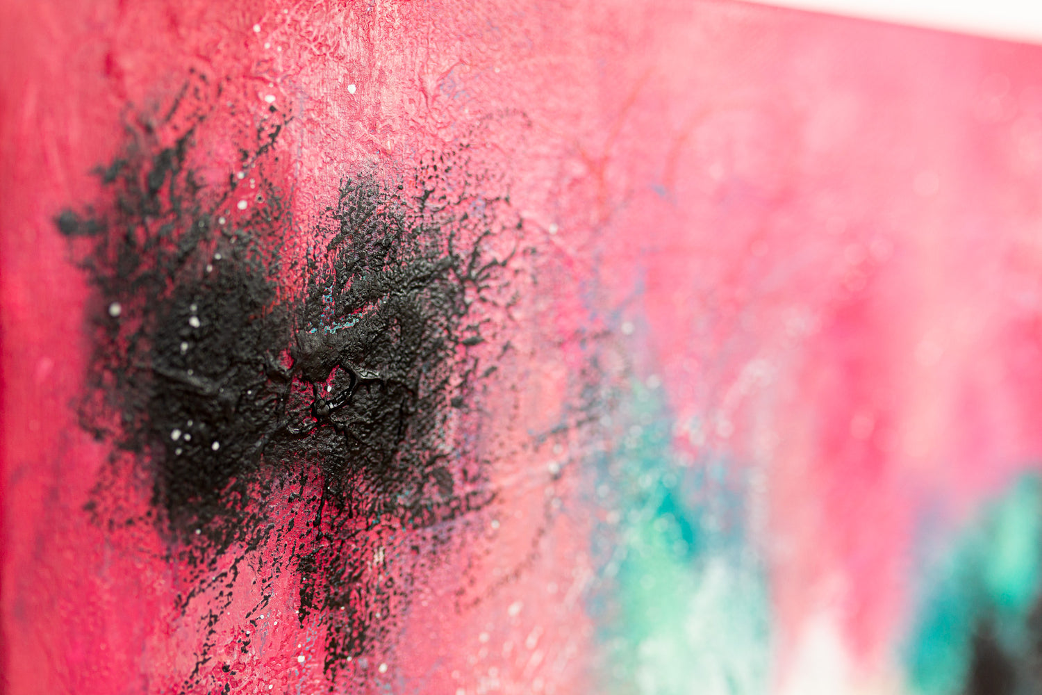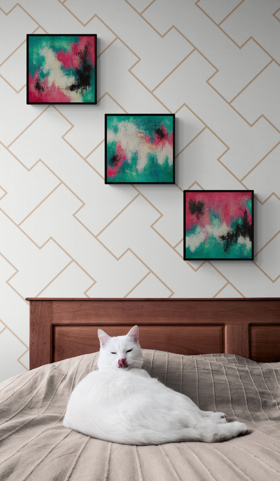 The inspiration for this series came from the colours palette that I've chosen from the start. I wanted to have a dominant colour of turquoise/mint green and combine this with pinks, but then add some neutrals in to balance everything out. My love for bright and vibrant colours in my art represents deep exploration and dreaming. They are joyful and playful and take me back to childhood experimentation and simply having fun.
